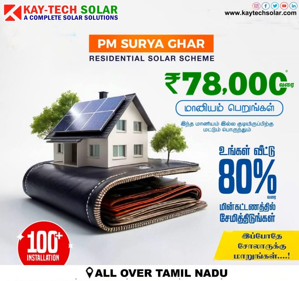 திருநெல்வேலியில் Rs. 78000 மானியத்தில் 4KW சோலார் சிஸ்டம் | Government solar scheme 2025 for Home